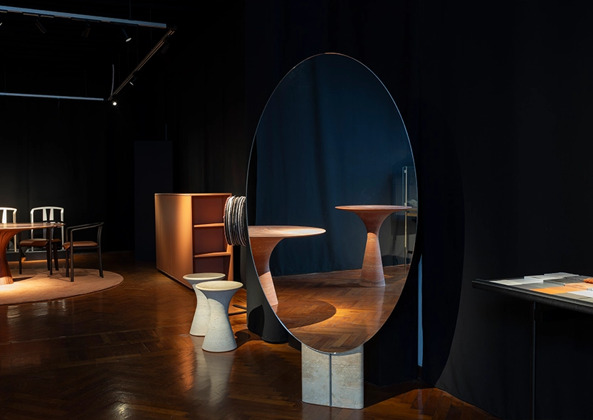 Récemment, nous avons eu l’honneur de fournir les toiles pour le stand d’exposition à Milan d’Alinea Design Objects, la marque de meubles de l’architecte d’intérieur Leo Aerts. Les tissus aux coutures nettes, associés à un éclairage bien pensé, ont constitué un élément important de la présentation visuelle de leur toute dernière collection de meubles.